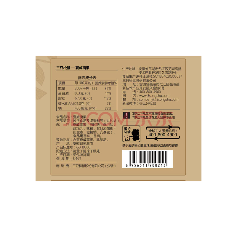 商品名称:三只松鼠夏威夷果商品编号:商品毛重:.00g商品产地:安徽省特性:带皮国产进口:国产包装:袋装分类:夏威夷果口味:奶油味